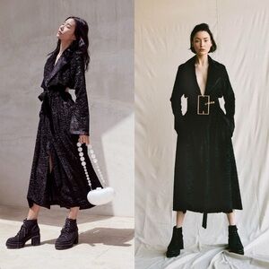 Tags: cult gaia coat, velvet trench, open-back coat, statement coat, matelassé velvet coat, designer coat