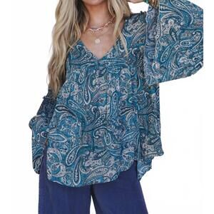 NEW THREE BIRD NEST brea paisley print top in blue