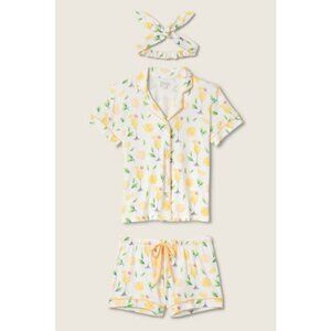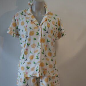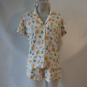 NWT Womens P.J. Salvage (Item- 67) White Yellow 3Pc Mimosa Me Pajama Short Set M