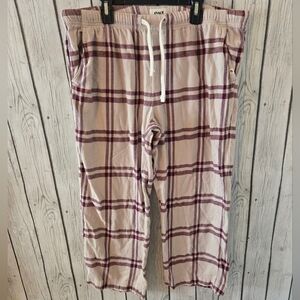 Pact Organic Cotton Cropped Plaid Lounge Pants Size L Pink Burgundy