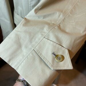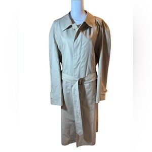 Sophisticated Burberry trench coat in beige. Features double-breasted design and waist belt. Timeless elegance for any wardrobe. Like New Condition. Only worn a handful of times. Unisex. Fits like a Woman’s 14. Made in England