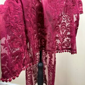 Perfect for formal events, evening wear, prom, photoshoots, gothic aesthetics, dark academia, fairycore, and romantic styling. The rich wine red color and sheer lace detailing create an elegant, dramatic look.
