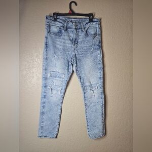 AMERICAN EAGLE Jeans Mens Distressed AirFlex 360 Skinny US 34x30 Light Wash Blue