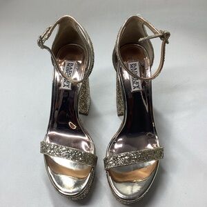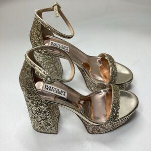 Badgley Mischka Party Platform Block Heel in Gold Silver Glitter
