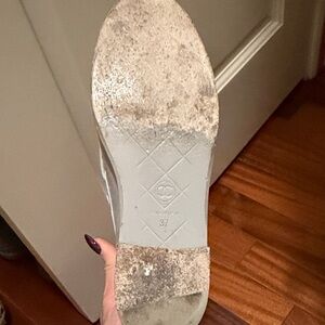 CHANEL Quilted Leather Loafers in Light Gray with Gold Logo