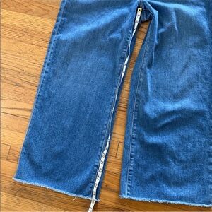 Elevate your style with these classic Paige blue wide-leg jeans. Perfect for any occasion, these jeans offer comfort and a timeless look. Wide leg, crop, raw hem, distressed back pockets. Size 31. EUC