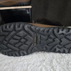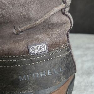 The boots are Merrell Decora Prelude Waterproof Winter Boots. These are high-performance winter boots designed for warmth and protection in snowy conditions.