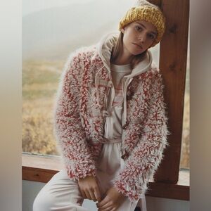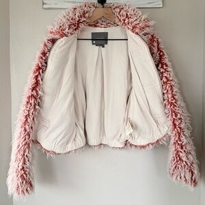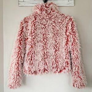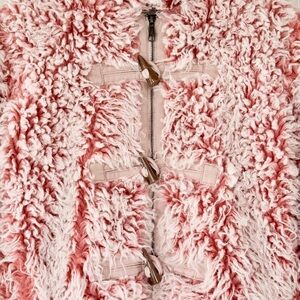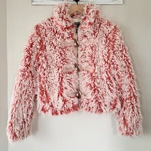 ANTHROPOLOGIE XS Brenna Faux Fur Coat in Pink • Coral Fuzzy Furry Toggle Jacket
