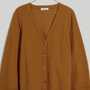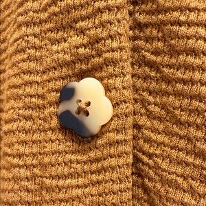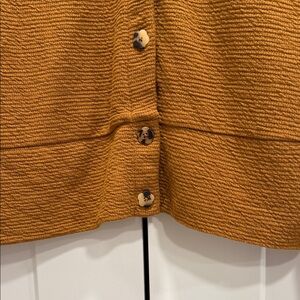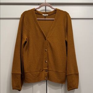 Cozy mustard cardigan with button front. Soft knit fabric. Perfect for layering.