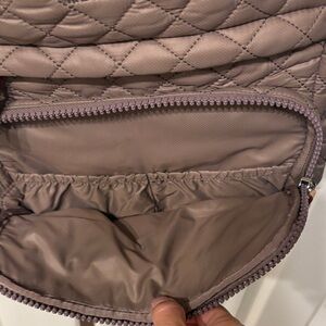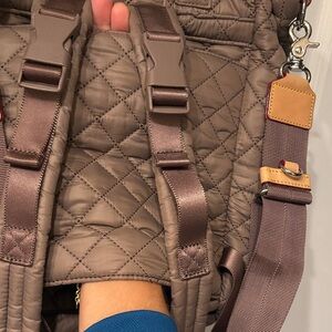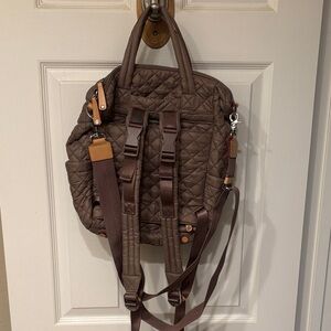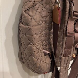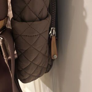quilted design with dual handles. Can be used as a crossbody bag as well. Features front zip pockets and adjustable straps, multiple pockets inside, including laptop or iPad compartment. Outside pockets (both sided) Ideal for daily or travel use. New with no tags
