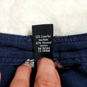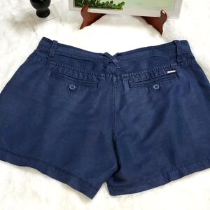 CALVIN KLEIN JEANS NAVY BLUE LINEN BLEND CASUAL SHORT - Solid Dark Blue, mid-rise, linen blend casual short. Belted. Four functioning pockets with button closure. Front zip with button closure. Pre-owned. Great condition.