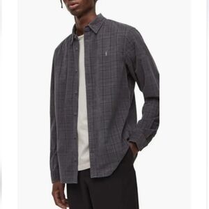 All Saints Eno Slim Fit Plaid Corduroy Button-Up Shirt in Tarnished Grey
