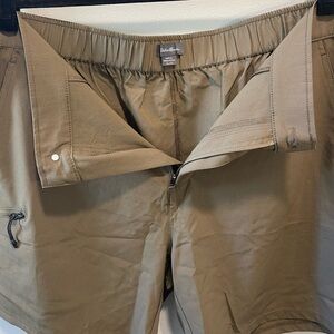 Lightweight men’s shorts with zip front. 90% polyester, 10% spandex. Excellent condition