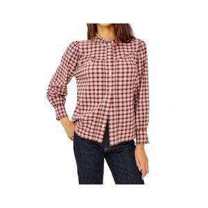 Presenting the Alanna Top by Rails, a chic addition to your summer wardrobe in charming Garnet Rose gingham. This long-sleeved blouse boasts a unique mix of comfort and style with a ruffled collar and button cuffs featuring ruffle edge detail. Made from a soft cotton blend consisting of 57% Cotton, 41% Rayon, and 2% Spandex, it features a button closure with ivory snap buttons for a secure fit. Care: Machine wash.