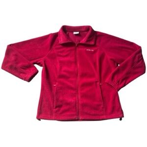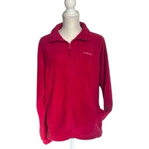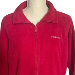 Columbia lightweight plush fleece zippered jacket in cherry red. Size XL