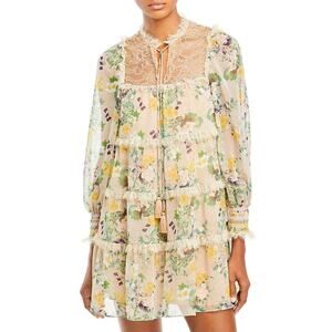 Alice + Olivia Floral Romance Almond 'Marcie Babydoll' Mini Dress Size S