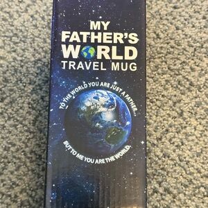 Travel mug with a space-themed design. Features the text 'My Father's World'.