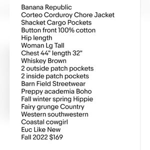 Banana Republic Corteo Corduroy Chore Jacket Shacket Woman Lg Tall Whiskey Brown