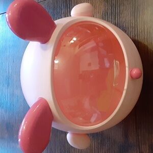 Cute pink bunny-shaped storage container. Perfect for organizing small items.