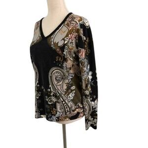 Escorpion Womens Medium Paisley V Neck Long Sleeve Top Black Multicolor