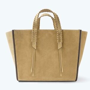 This NWT MIKO tote by Freda Salvador is handcrafted with hazel suede and finished with Freda Salvador’s iconic notched welt, whipstitch top handle, and shoulder straps for choice of carry. The roomy, microsuede interior expands with a functional gusset and has a small slip pocket to store essentials. No longer sold at Freda Salvador. Comes with branded dust bag.