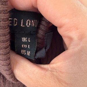 QED London Long Sleeve Ribbed Dress in Brown