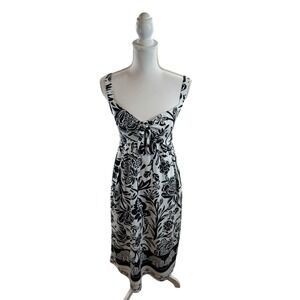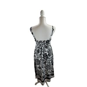 Knox Rose Black & White Floral Midi Dress Knot Keyhole Front and Smocked Back XS