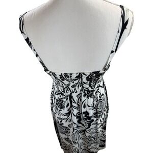 The Knox Rose Black & White Floral Midi Dress is a stylish and feminine option for casual occasions. The dress features a beautiful floral pattern, a V-neckline, and a knot keyhole front for added detail. The smocked back adds a touch of whimsy, while the sleeveless design and pullover closure make it easy to wear. Made from a blend of other fiber, viscose, and lyocell, this dress is machine washable for convenience. Perfect for summer and spring, this sundress in size XS is a must-have addition to any woman's wardrobe. The straps are adjustable with buttons (see picture) and there are pockets.