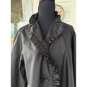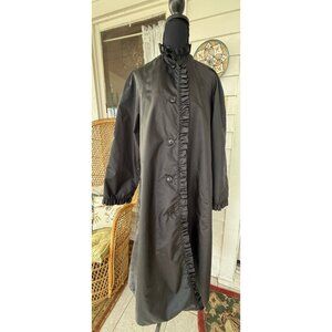Vintage 70's The Totes Nylon Rain Coat Black Ruffled Collar Sleeves Gothic Size