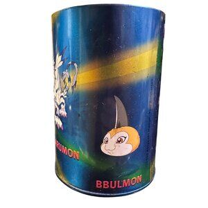Rare collectible tin featuring iconic characters from the original Digimon Adventure anime series, capturing the nostalgic essence of late 90s digital monster franchise. Carefully preserved with vibrant graphics showcasing key characters in dynamic poses, this vintage piece offers collectors a tangible memory of the beloved animated series.