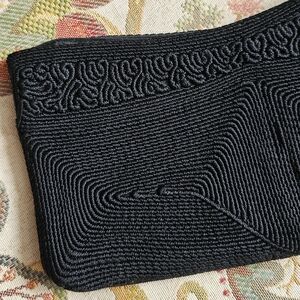 1940's Corde clutch in black, with a Lucite zipper pull. Beautiful little bag for an evening out. Another bag to add to your collection if you LOVE vintage bags like I do!