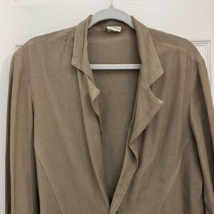 CP Shades 100% Rayon Long Trench Jacket Size Medium Tan Beige Collared Flowy