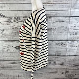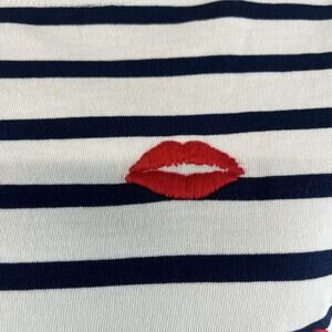 J. Crew Top Pullover sz Small Ivory Navy Blue Striped Lip Stick Lips Embroidery