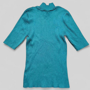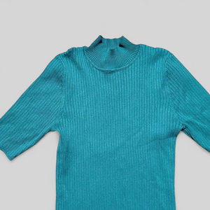 Madison grey Mock Neck ribbed short sleeve sweater emerald green casual small