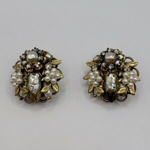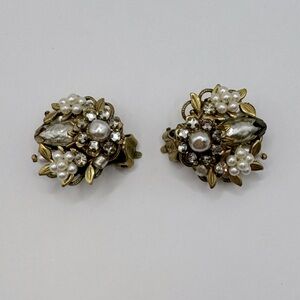 ORIGINAL BY ROBERT Vintage Pearl & Crystal Filigree Clip-On Earrings