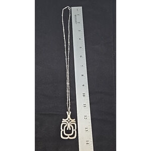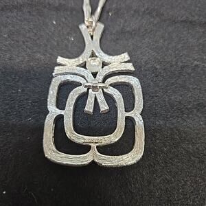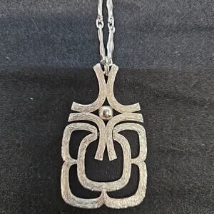 Avon Vintage Silver Tone Geometric Pendant Necklace – 1970s Modernist Statement