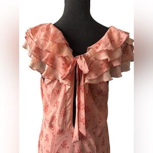Chic asymmetrical dress with floral pattern. Features ruffled sleeves and flowing hem. Perfect for stylish outings.
