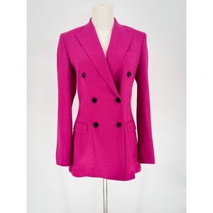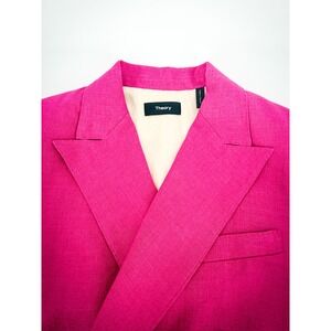 Theory Hot Pink 100% Linen Double Breasted Tailored Blazer Jacket Size 2 $595