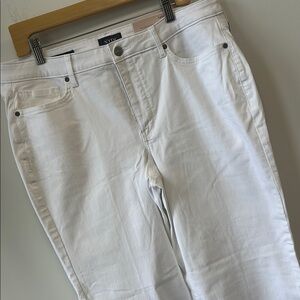 These NYDJ jeans boast a pristine white hue and a fashionable flare and wide leg cut, ideal for elevating your style. Made from high-quality denim, they ensure a comfortable and flattering fit. Lift-tuck Technology💕