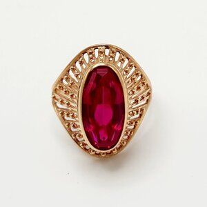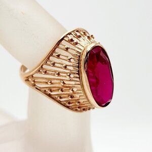 Vintage USSR Soviet Union Art Deco Ruby 583 Solid Rose Gold Ring 6.75