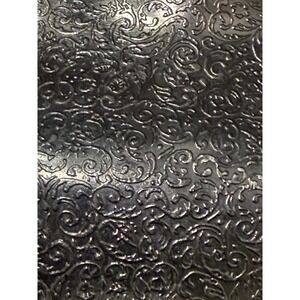 Vintage silver-tone metal jewelry box features an ornate embossed design of a Victorian lady and a castle on the lid, framed by blooming roses. The sides are heavily decorated with floral motifs and scrollwork, supported by elegant cabriole legs. Inside, the box is lined with a vibrant red velvet fabric to protect delicate items. This footed trinket box serves as a beautiful decorative piece for a vanity or dresser while providing a secure place for small treasures.