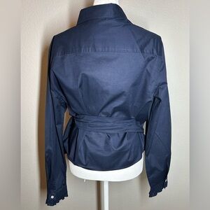Lauren Ralph Lauren Navy Cotton Ruffle Wrap Blouse Size L Old Money