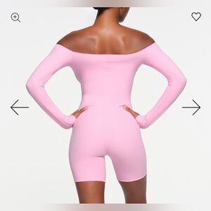 Picot off the shoulder bubblegum pink discontinued rare skims romper