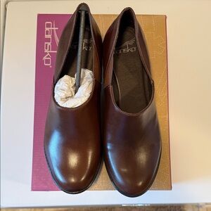 Brand new with box elegant brown leather wedge pumps by Dansko. Perfect for any occasion. I have an identical black pair, so comfortable and last forever.