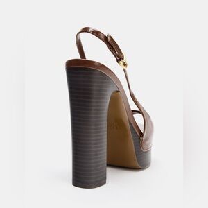NWT. Zara Brown Platform Sandal-Style Shoes. Platform sole and high heel. Fastens with a back strap and metal buckle. Heel height: 5.3 inches (13.5 cm). Size 6,5. Ref. 2303/610.
