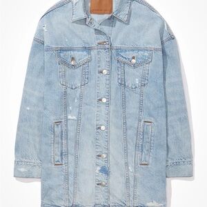 American Eagle Oversized Distressed Denim Jacket Light Wash Boyfriend Trucker