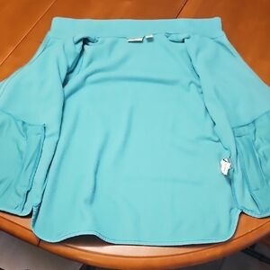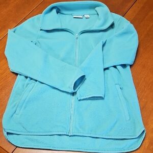Soft thin teal fleece with zip front. Ideal for cool weather.