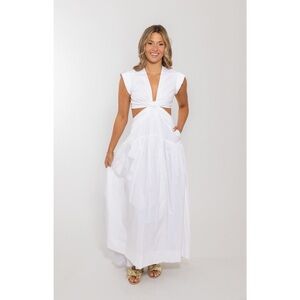 Chic white maxi dress with a stylish cut-out design. Perfect for summer events.