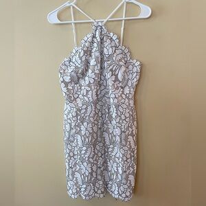 Lulus Delicate Darling Beige and Ivory Lace Bodycon Dress