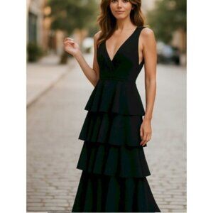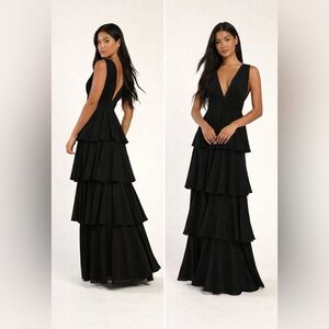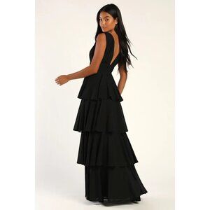 Lulus Black Amazing Evening Black Tiered Maxi Dress Gown Party Wedding XL NEW